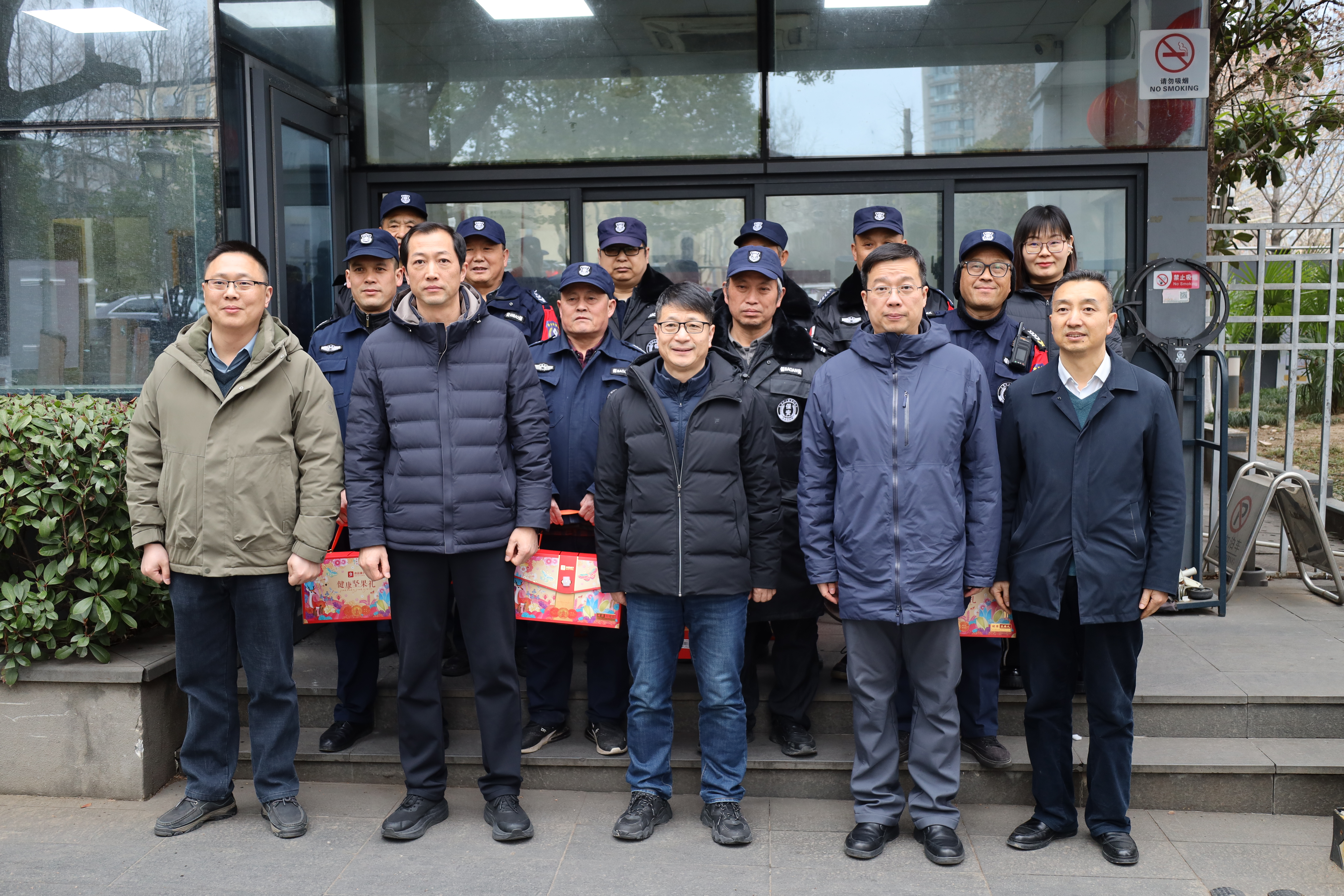 新春临近,年味渐浓,汉中门校区里红灯笼悄然悬挂,处处洋溢着祥和的节日气息。2 月9 日,胡立宏副校长带队走访慰问坚守岗位的教职工及留校学生,送上新春祝福,并专项检查寒假及春节期间校园安全工作。校办、汉管办、保卫处、研工部、学工处、后勤基建处等负责同志陪同走访慰问。